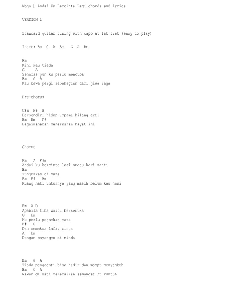 Hok Aloh Guitar Chords Andai Ku Bercinta Lagi Mojo Guitar Chord